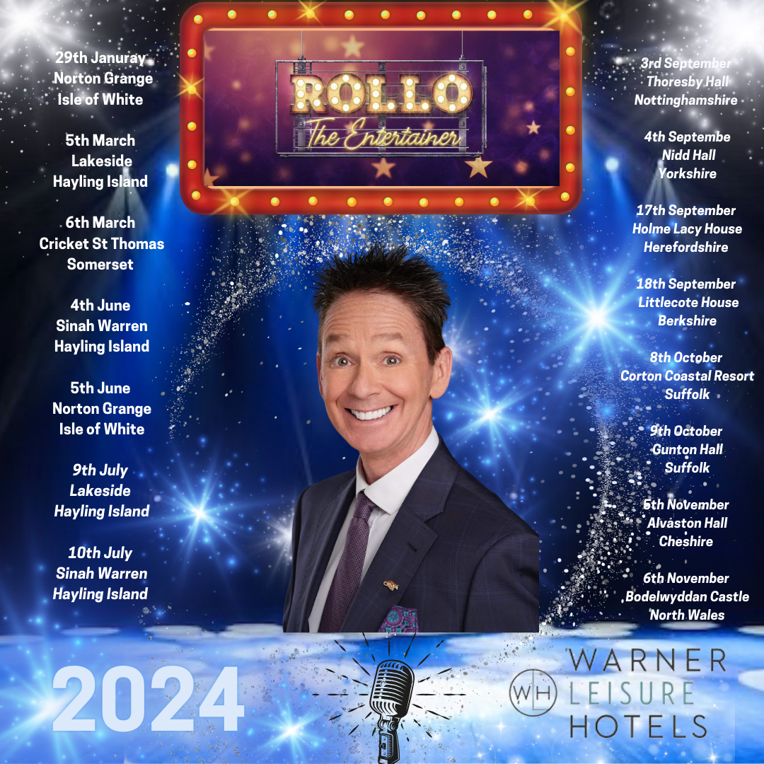 Rollo is currently appearing at the prestigious 'Warner Hotels' as well as different theatre shows across the UK. Rollo is also touring the circuit alongside son Tommy J (click on Rollo and Tommy J page for more info)